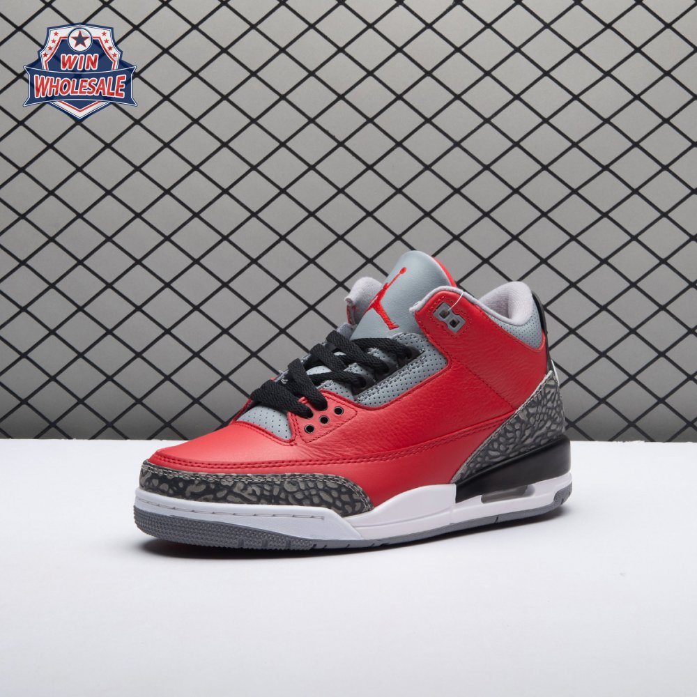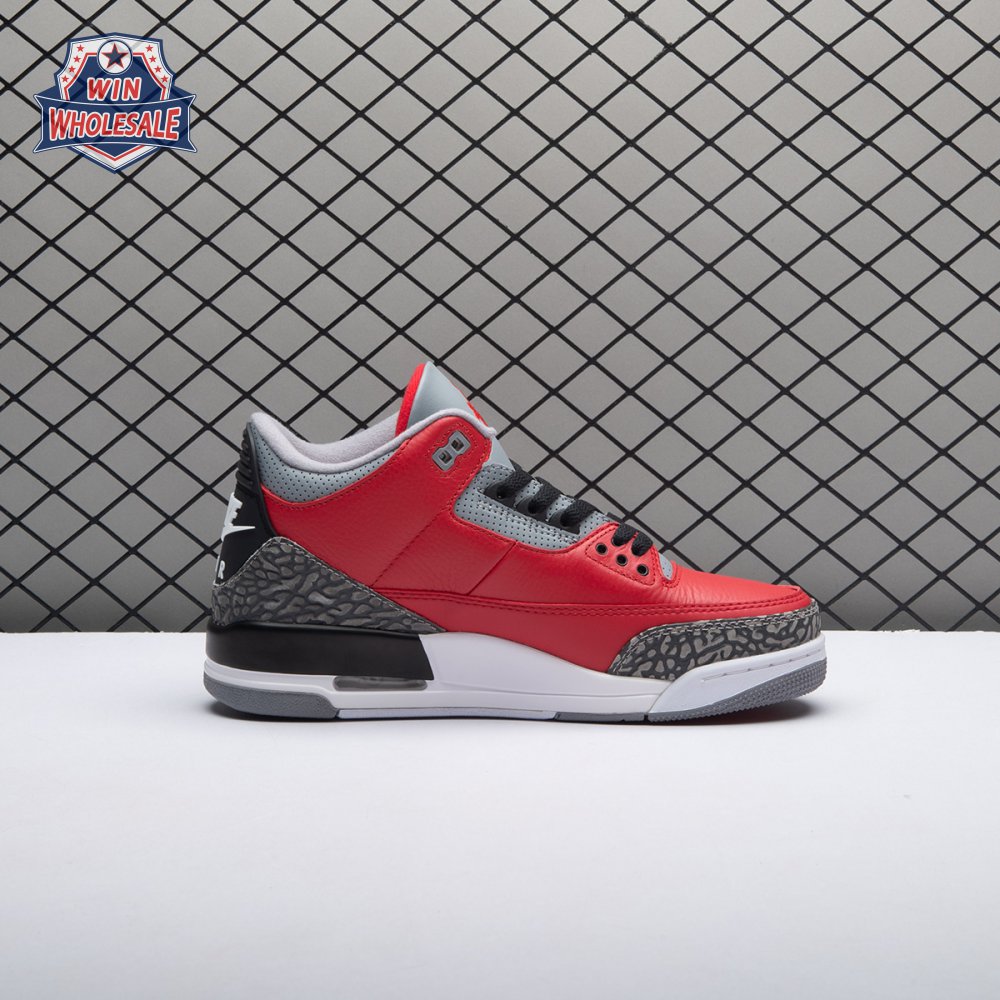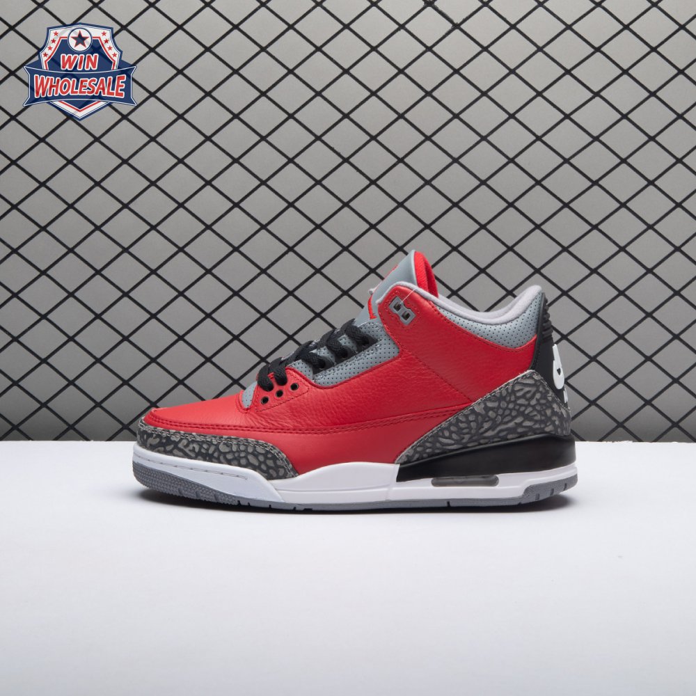 Dropping in conjunction with the 2020 NBA All-Star Weekend in Chicago, the Air Jordan 3 Retro SE 'Unite' showcases classic color blocking that stays true to the sneaker"s Windy City heritage. The tumbled leather upper is finished in a bold Fire Red hue, complete with Nike Air branding and grey cement-print overlays at the toe and heel. The mid-top is anchored by a contrasting white midsole with visible Air sole cushioning.