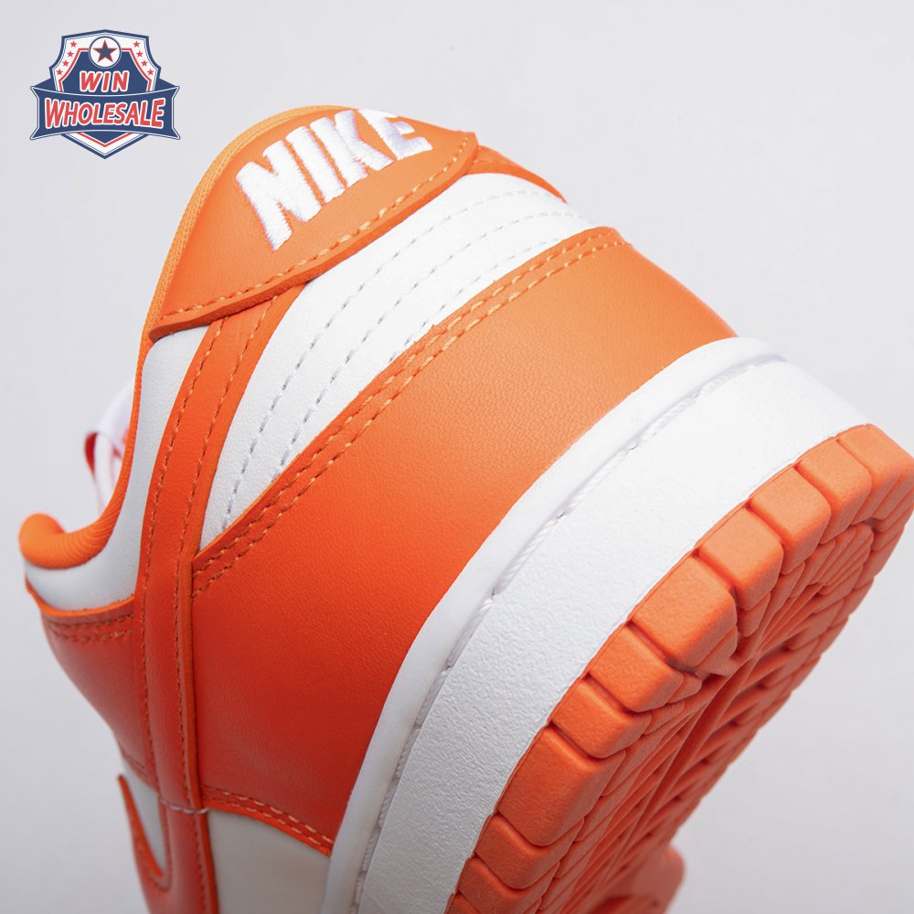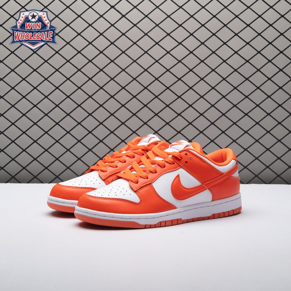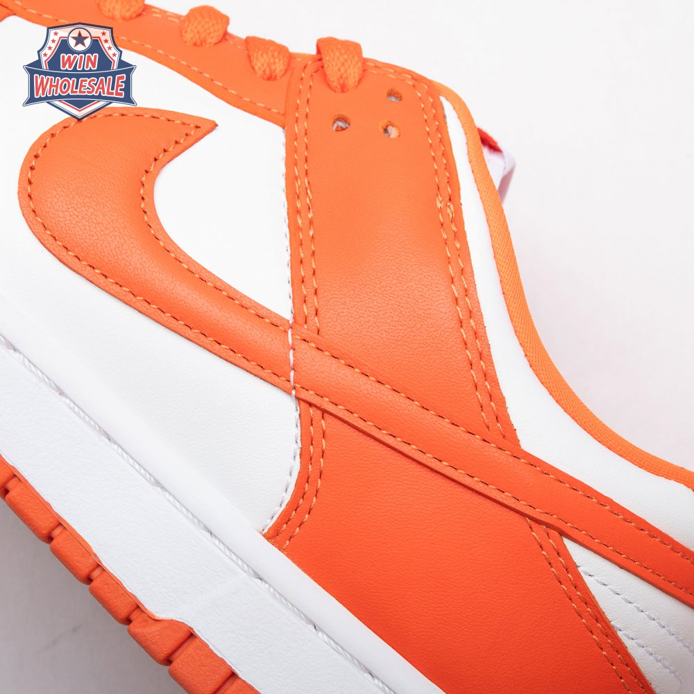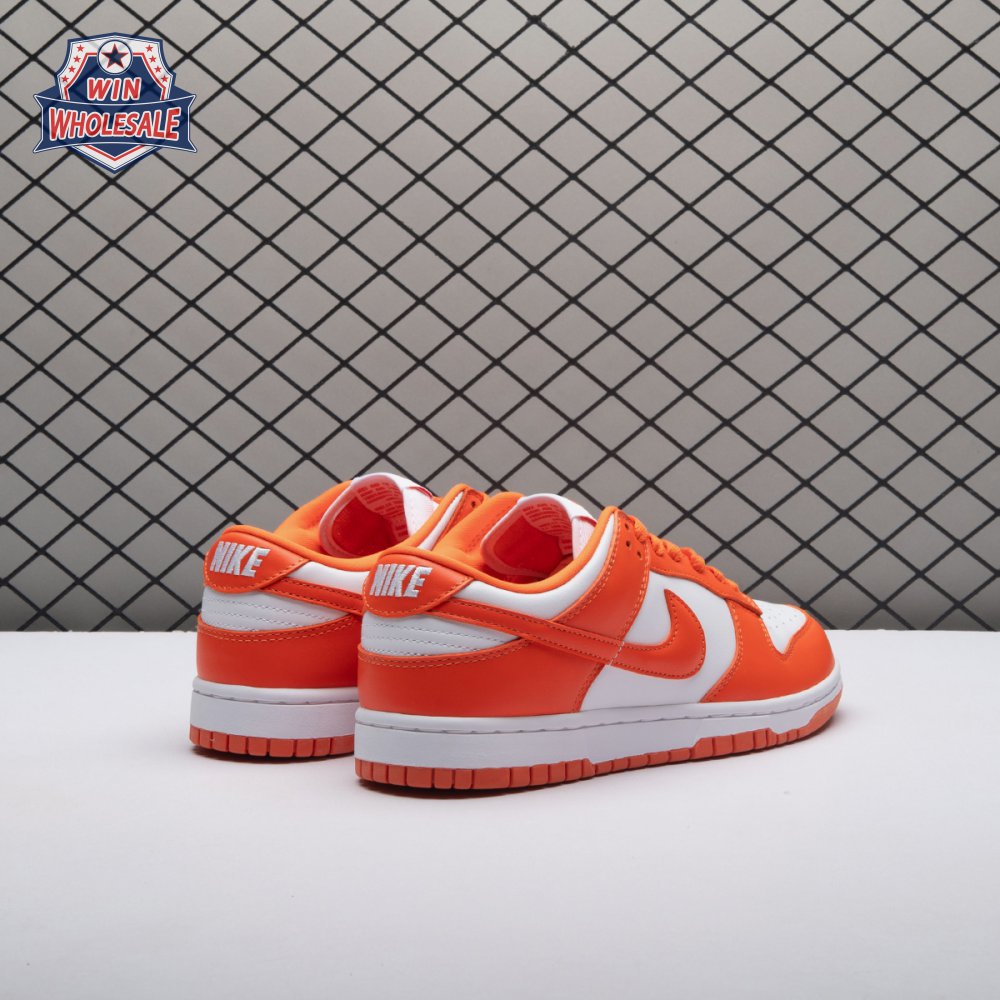 The Dunk Low Retro SP "Syracuse" celebrates the silhouette"s 35th anniversary with a classic colorway from Nike"s "Be True to Your School" series from 1985. The two-tone high-top Dunk that originally represented the University of Syracuse basketball team is reinterpreted as a versatile low-top. The all-leather upper combines a crisp white base with Orange Blaze overlays, complete with a woven Nike tag on the breathable mesh tongue.