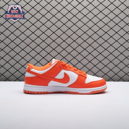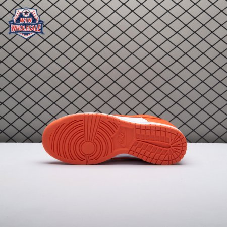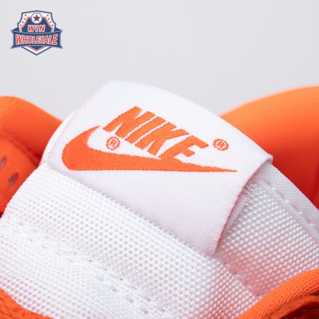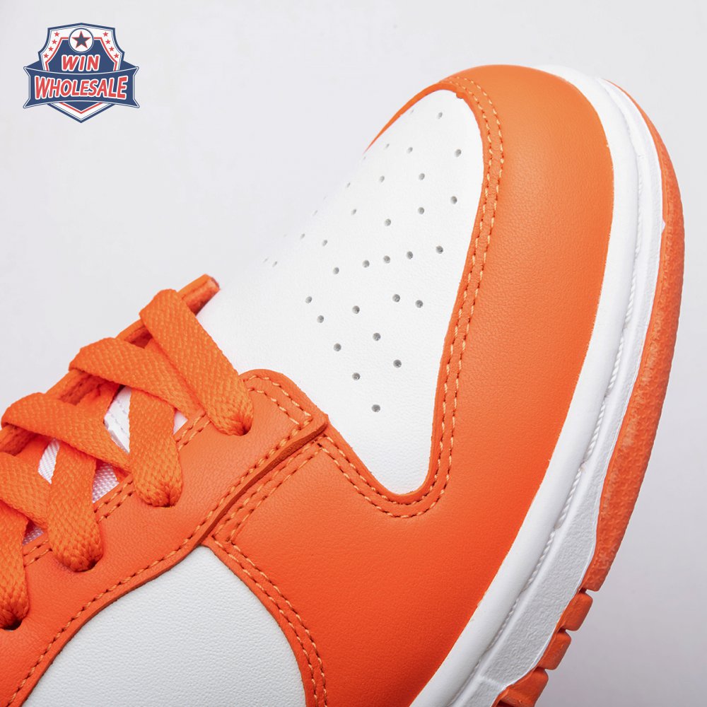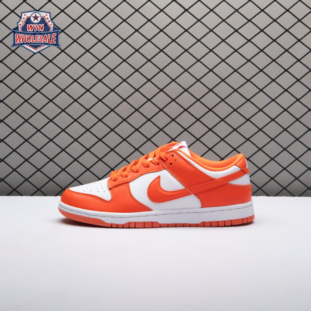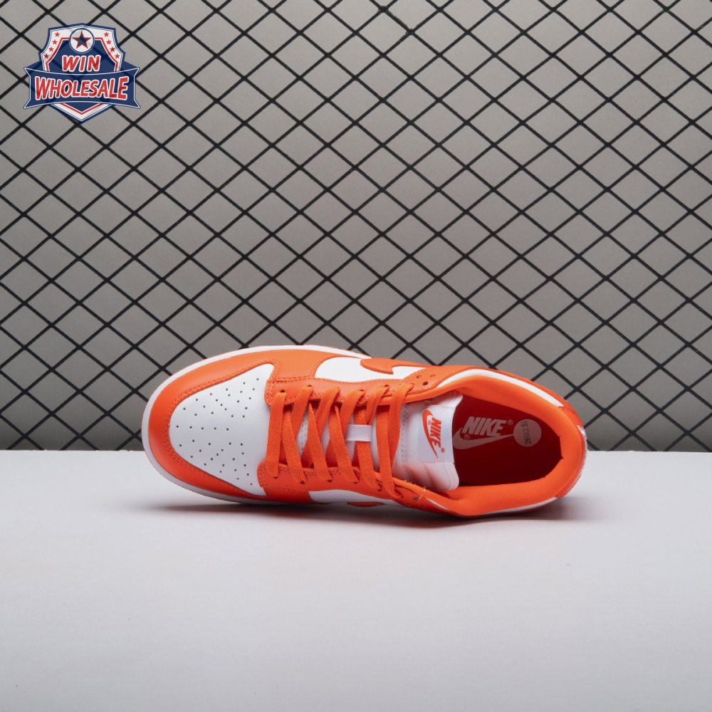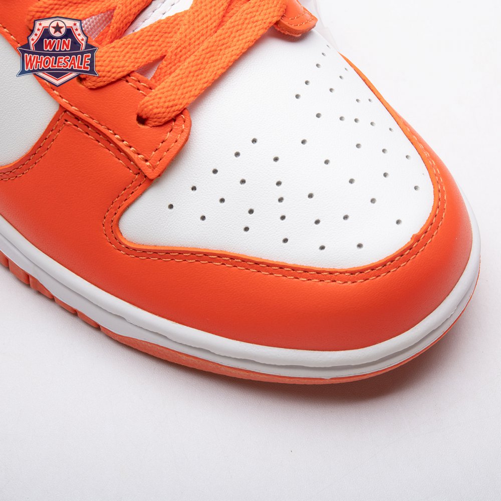 The Dunk Low Retro SP "Syracuse" celebrates the silhouette"s 35th anniversary with a classic colorway from Nike"s "Be True to Your School" series from 1985. The two-tone high-top Dunk that originally represented the University of Syracuse basketball team is reinterpreted as a versatile low-top. The all-leather upper combines a crisp white base with Orange Blaze overlays, complete with a woven Nike tag on the breathable mesh tongue.