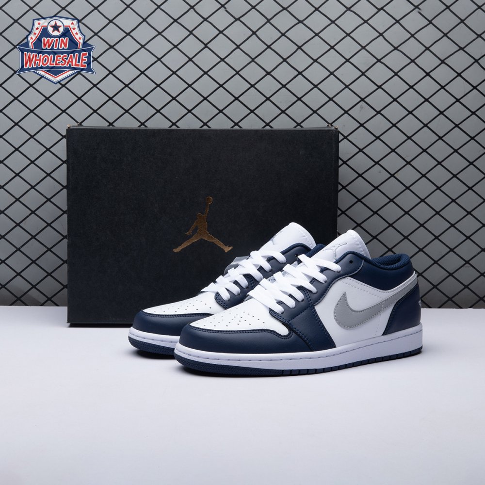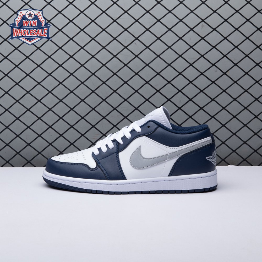 Jordan 1 Low Wolf Grey Midnight Navy 553558-141 Unisex