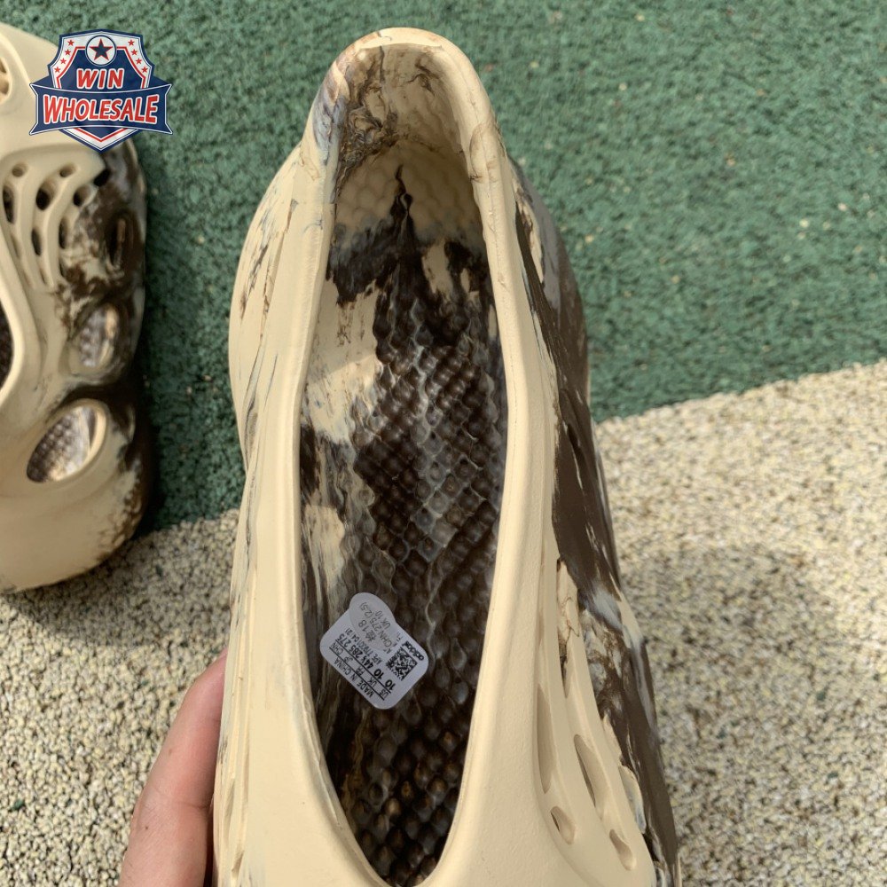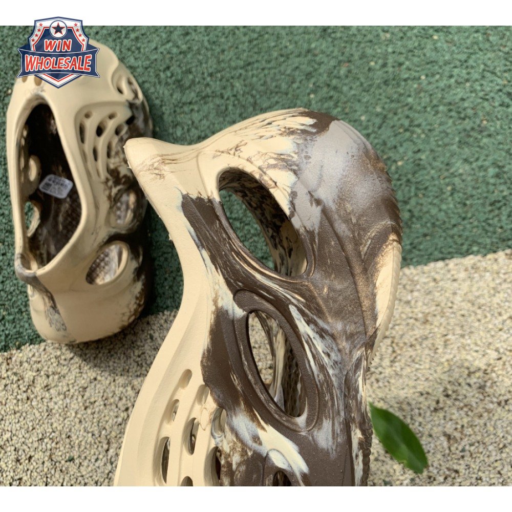 The adidas Yeezy Foam Runner "MX Cream Clay" enlivens Kanye West"s amphibious slip-on with a swirling blend of brown and grey. The neutral hues appear to have been painted on the surface of the cream-colored one-piece upper, crafted from a combination of lightweight EVA and hydroponically produced algae. Ventilation ports of varying sizes ensure breathable comfort, while the sculpted design keeps the foot locked in place.